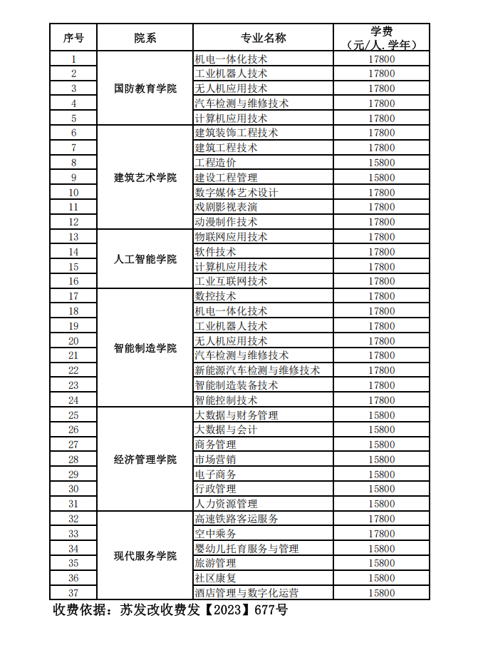 宿迁泽达职业技术学院2025年各专业学费标准