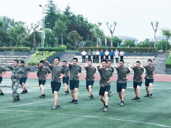 吴总经理一行在董事长和院领导的陪同下,共同观看了国防教育系同学们的捕俘拳、应急棍术、警棍盾牌操展示。泽达学子军姿挺拔、斗志昂扬、士气高亢,逼真的演习,招招制敌的动作,处处展现着朝气蓬勃、奋发向上的精神面貌,赢得了来宾的高度赞赏。