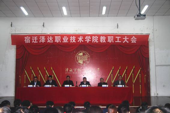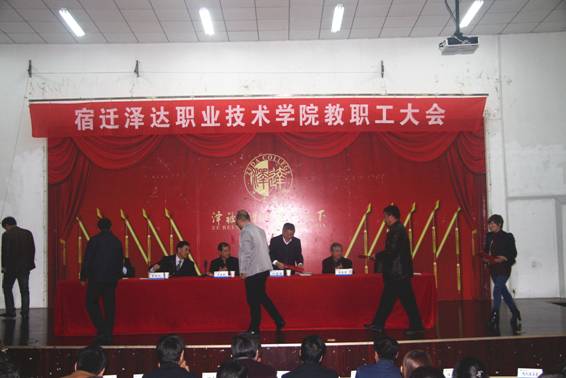 11月6日下午,我院在崇德楼二楼西阶梯报告厅召开了全院教职工大会。宿迁市工商联副主席、市软件园管委会副主任、泽达集团董事长王益民,执行院长叶惠清、党委书记葛高元、院领导李庆录、张江涛、高再飞以及全体教职员工参加会议。会议由葛高元书记主持。