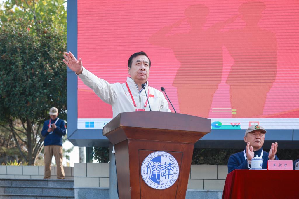 赵炳起在开幕式上致辞。他代表学院全体师生,向30支参赛队伍、700余名师生表示热烈的欢迎,向各位领导、嘉宾致以诚挚的感谢,向裁判员、工作人员和志愿者致以崇高的敬意。他指出,学校始终秉持“崇文尚武、泽达天下”的校训精神,形成“军校式办学、连队化管理”的办学特色,将国防教育与爱国主义教育深度融合,先后获评“全国国防教育特色学校”等荣誉。此次赛事在我校举办,既是对学校办学成果的充分肯定,更是一份沉甸甸的责任。学校将全力做好服务保障,确保赛事圆满顺利。他强调,国旗是国家的象征,爱国主义是民族精神的核心,本次展示赛既是对革命先辈的深切缅怀,更是对青年一代爱国情怀的集中锤炼。他希望广大队员以挺拔的军姿、铿锵的步伐,践行“请党放心、强国有我”的青春誓言,在比赛中赛出水平、赛出风格,并预祝各参赛队伍取得优异成绩,本届展示赛圆满成功。
