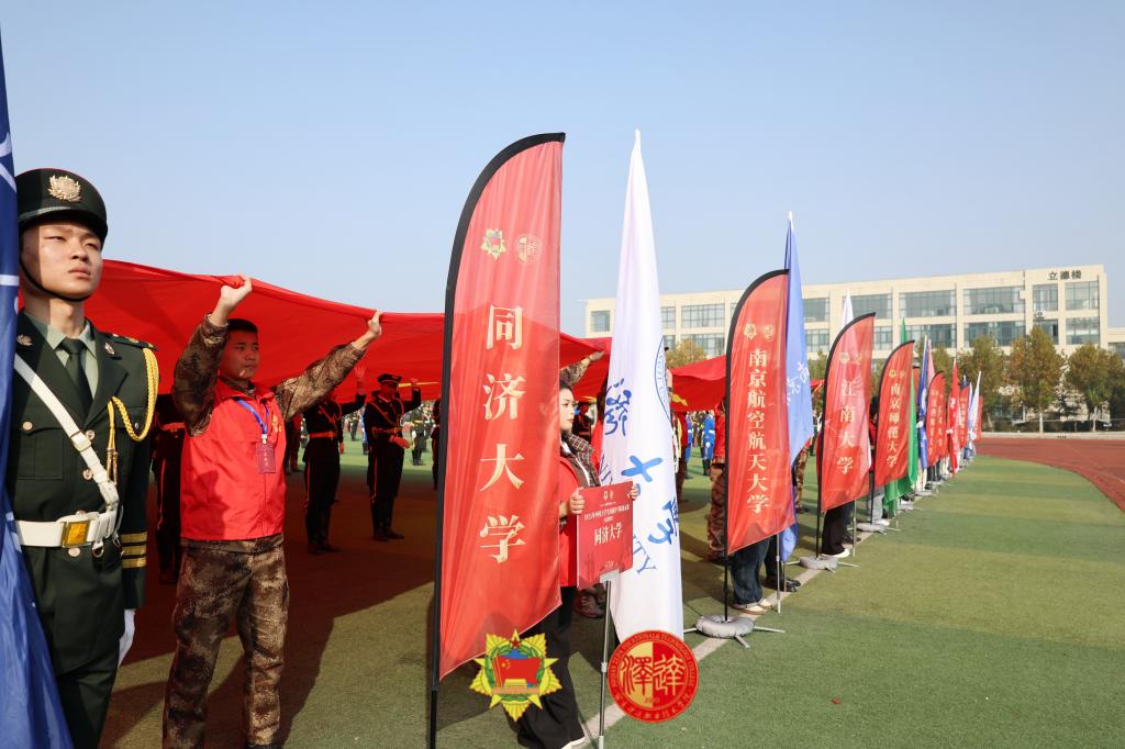 11月14日上午,2025年中国大学生国旗护卫队展示赛(东部赛区)开幕式在宿迁泽达职业技术学院举行。本次赛事在中宣部宣传教育局(全民国防教育局)、教育部思想政治工作司指导下,由中国学生体育联合会主办,汇聚了来自东部赛区的复旦大学、同济大学、南京航空航天大学、南京师范大学、南京农业大学、东华大学、中国矿业大学、江南大学、太原理工大学、杭州电子科技大学、安徽工业大学、江西师范大学、江汉大学、广州体育职业技术学院、宿迁泽达职业技术学院等30所高校代表队、700余名师生。