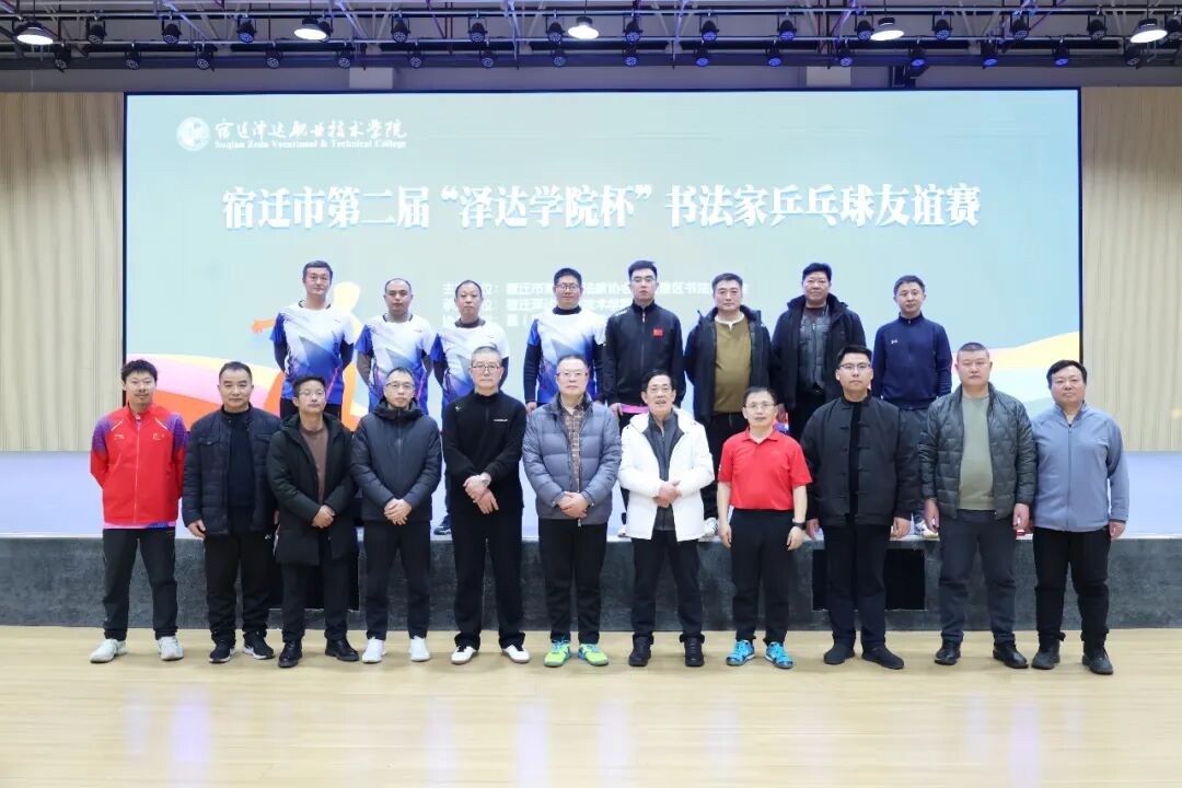 12月28日,宿迁市第二届“泽达学院杯”书法家乒乓球友谊赛在我校举办。本次赛事由宿迁市青年书法家协会、宿豫区书法家协会主办,宿迁泽达职业技术学院承办,旨在弘扬中华优秀传统文化,促进书法艺术与体育运动的融合发展。比赛开幕式由宿豫区书法家协会主席丁爱国主持。