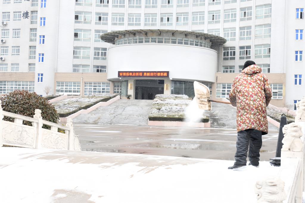 为保障校园道路通行安全,安全稳定与后勤管理处工作人员顶风冒雪、分工协作,紧盯校园主干道、人行步道、教学楼与宿舍区台阶坡道、食堂出入口等关键区域及易滑点位,科学播撒环保型融雪剂,同步分片分段开展积雪清扫作业,加速冰雪消融,有效防范道路结冰引发的安全事故,为留校师生和值班教职工保障安全畅通的出行环境。