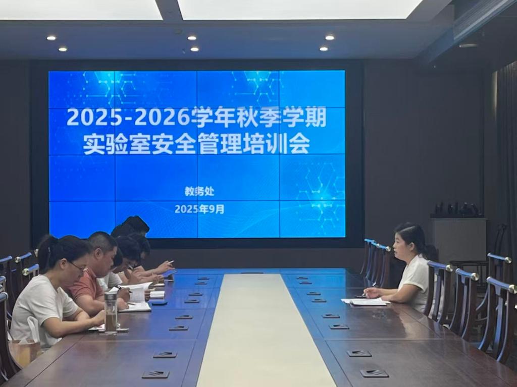 2025年9月5日下午,我校在立德楼二楼会议室召开2025-2026学年秋季学期实验室安全管理培训会。教务处相关负责人及各学院专兼职实验室管理人员参加会议,共同学习实验室安全管理工作要求,部署新学期实验室安全管理任务。