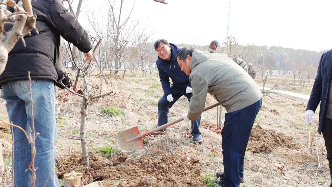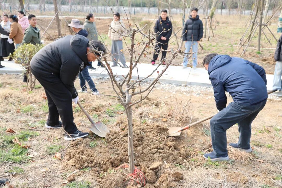 副校长王凯作动员讲话。活动中,师生们分工协作,手持工具挥锹铲土,细心扶正树苗,夯实新土,并认真浇灌定根水。大家干劲十足,各个环节衔接有序,配合默契,以劳育美、以绿润心。为进一步巩固绿化成果,活动现场同步启动了“绿植认养”计划,各部门、各单位为自己种下的树苗悬挂标识牌,签署养护责任书,真正让“履行植树义务”成为日常行动。