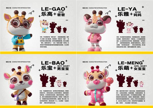 经过多轮打磨优化,团队最终推出以“长颈鹿家族”为核心的园区主IP形象,该方案既传递亲子陪伴理念,又以鲜明视觉符号强化品牌记忆,最终我校师生提交的该方案150余项项目清单均顺利通过企业与甲方双重审核并成功落地。