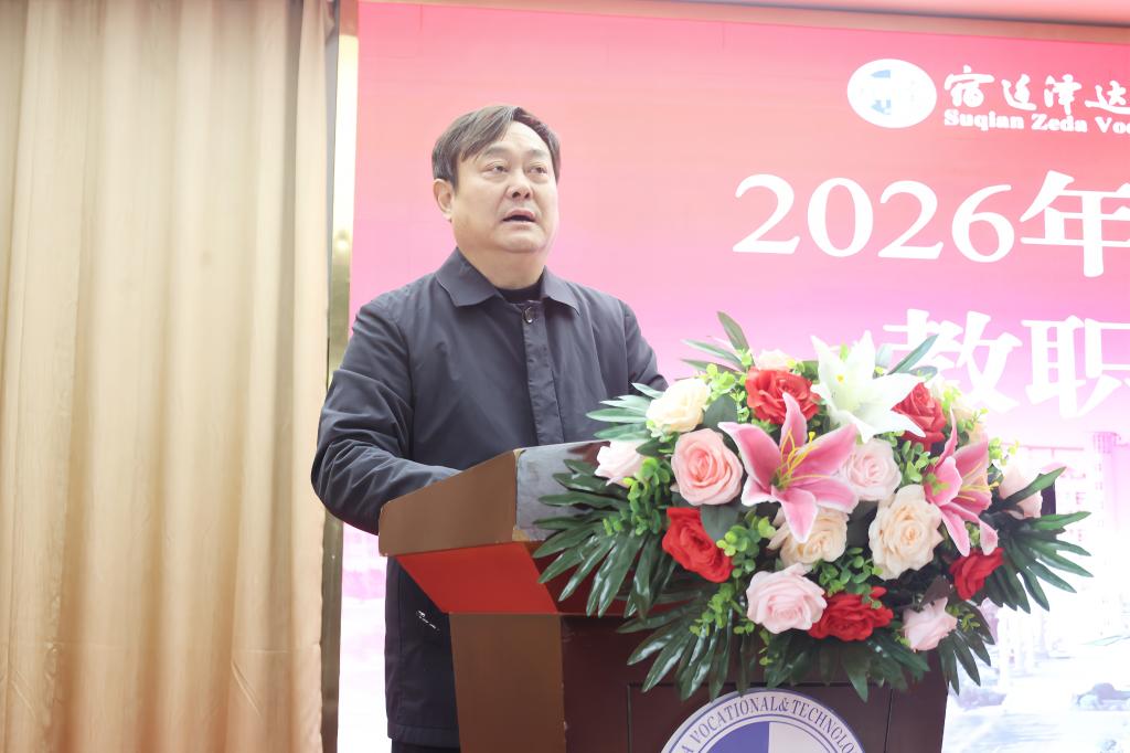 3月6日上午,宿迁泽达职业技术学院召开2026年春季学期教职工大会。党委书记汤成军主持会议,校长赵炳起作《深化关键要素改革 夯实持续发展根基》主旨讲话。